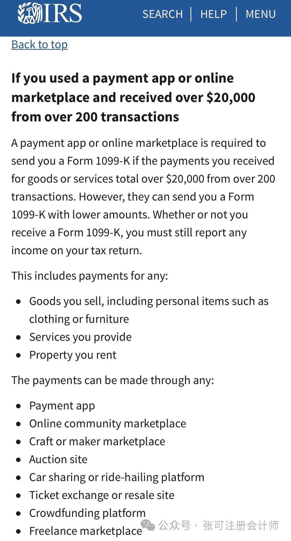支付应用程序和在线市场只需向 2023 年超过 200 笔交易收到超过 20,000 美元的纳税人发送 1099-K 表格。