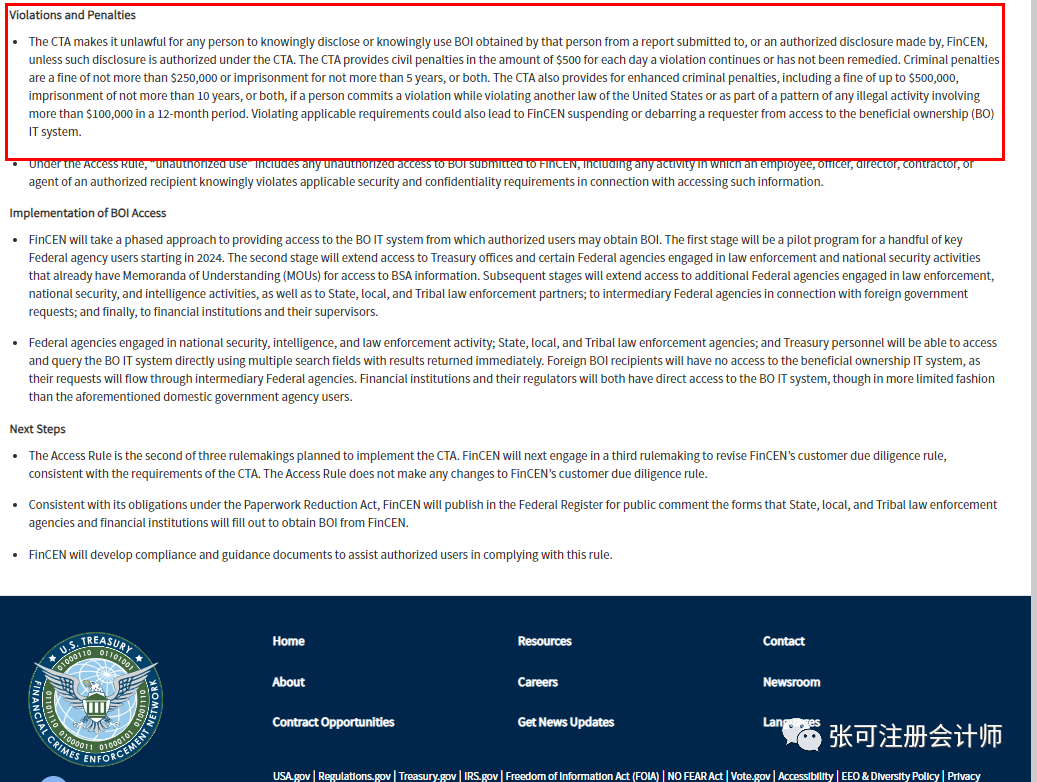 FinCEN 政府网站关于BOI报告规定及未按时申报罚款说明原文截取参见如下: